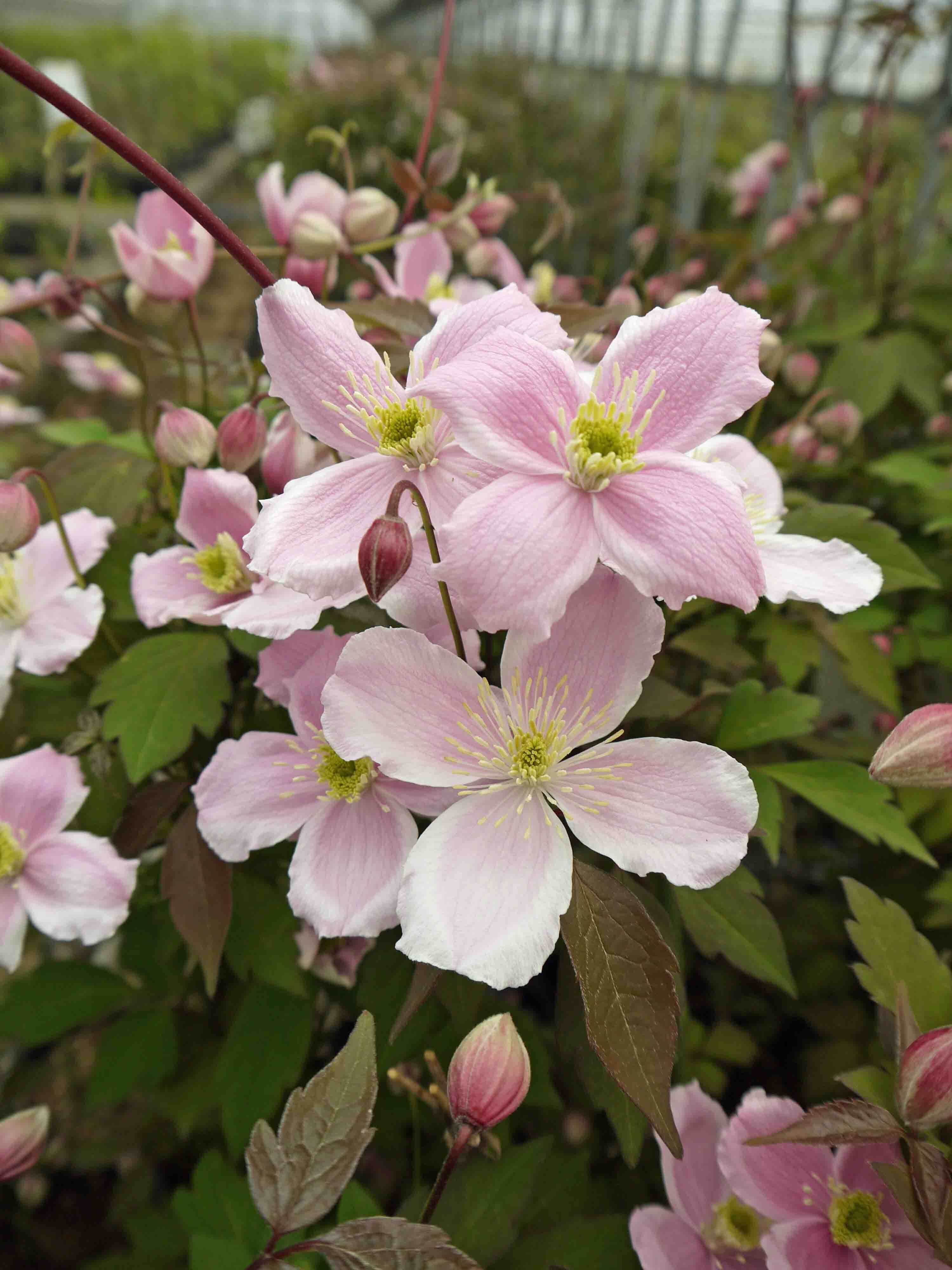 モンタナ系の人気品種。生育旺盛で花付きが良く、甘い香りがする。