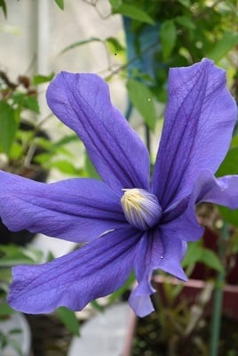 ふっくらとした花弁の青紫花。インテグリフォリア系にめずらしい早咲き品種。四季咲き性。