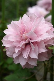 リトル・マーメイドのようなサーモンピンクの花色が美しい八重咲き品種。花弁のもとに入る紫色がピンクをひきたてる。